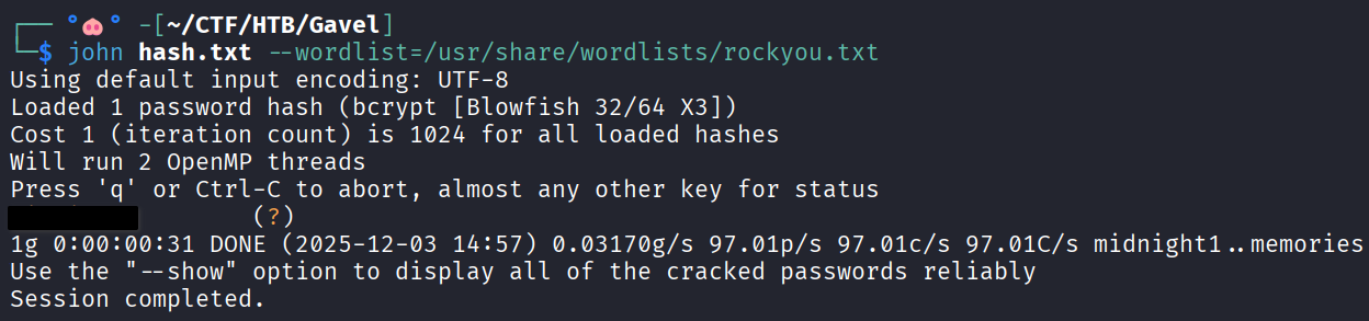 Service Info: Host: gavel.htb; OS: Linux; CPE: cpe:/o:linux:linux_kernel